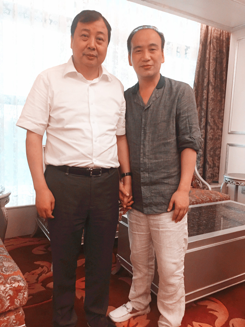 中共十九大代表、江蘇省人大常委會(huì)委員、華西村黨委書記、華西集團(tuán)董事長(zhǎng)吳協(xié)恩(左)與南京鴨業(yè)協(xié)會(huì)會(huì)長(zhǎng)竇仁彬(右)合影