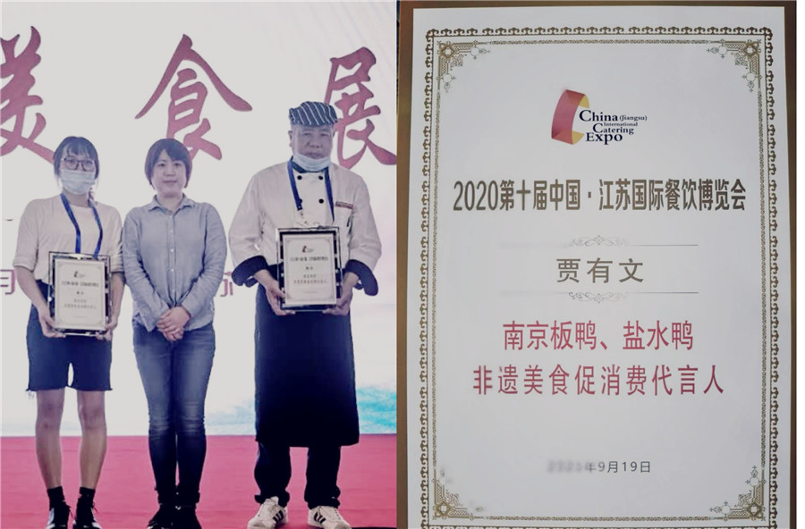 在“非遺美食展演”中,賈有文技師現(xiàn)場展演并介紹了桂花鴨的制作工藝,評委以及市民朋友品嘗了桂花鴨,贊不絕口。通過展演評比,我公司榮獲“非遺美食傳承基地”,賈有文技師獲得了南京板鴨、鹽水鴨“非遺美食促消費代言人”。在19號上午“非遺美食大賞蘇韻好禮·美食相伴選品會”上,經(jīng)過評委們的品鑒和投票,我公司板鴨、鹽水鴨成功入選。