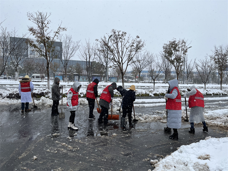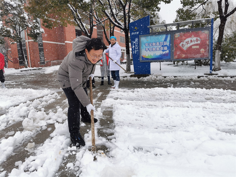 盼望著盼望著,南京迎來2022年第一場降雪。新年開工第一天,大雪漫天飛舞,道路層層冰凍,走進桂花鴨濱江生產(chǎn)基地,銀裝素裹,分外美麗!但厚厚的積雪給大家出行帶來了諸多不便,為暢通交通,方便出行,大家不畏嚴寒,頂著風(fēng)雪,揮舞著鐵鍬開始對廠區(qū)內(nèi)以及路上的積雪和結(jié)冰進行清掃。大家齊心協(xié)力,配合默契,鏟的鏟、推的推、掃的掃,忙碌的身影構(gòu)成了一道亮麗的風(fēng)景線。雖然室外溫度很低,但大家勞動的熱情和團結(jié)的力量讓這個冬日變得格外溫暖!