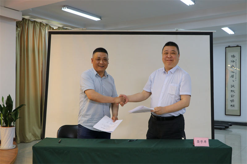 ▲公司總經(jīng)理徐偉同志與公司工會主席杲先松同志簽訂《2022年企業(yè)工資集體合同》