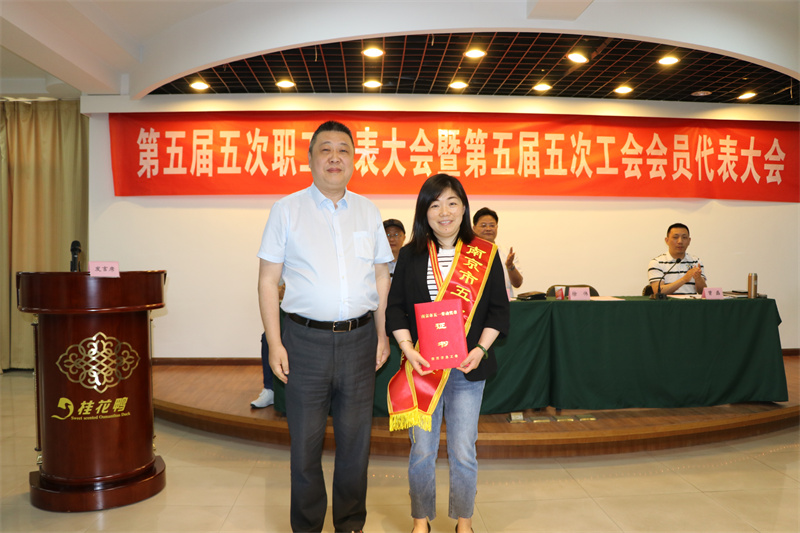 ▲公司總經(jīng)理徐偉同志為“2022年度南京市五一勞動獎?wù)?rdquo;曹玉蘭同志頒發(fā)證書及獎?wù)?/span>