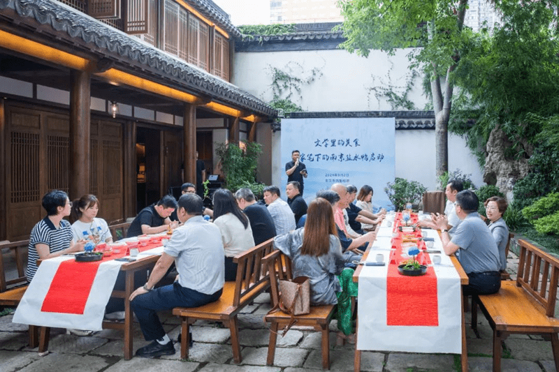 公司總經(jīng)理徐偉與作家王干、儲(chǔ)福金、姜利敏、沈喬生、楊莎妮,江宴餐飲、尋魏餐飲、櫻桃鴨、盛源祥、今世鵬、金箔湖熟鴨業(yè)、湖熟板鴨負(fù)責(zé)人與省僑聯(lián)文化交流部部長呂靜、省綠色食品辦公室主任徐繼東、南京市僑聯(lián)書記楊雯懿,南京市鴨產(chǎn)業(yè)鏈鏈長、市農(nóng)業(yè)農(nóng)村局副局長馬潔峰,省餐飲行業(yè)協(xié)會(huì)會(huì)長于學(xué)榮、秘書長葛旭東、會(huì)長助理奴卉卉、美食藝術(shù)委總干事王蘇源,省綠色食品協(xié)會(huì)秘書長燕東峰等共同啟動(dòng)文學(xué)里的美食——作家筆下的南京鹽水鴨。
