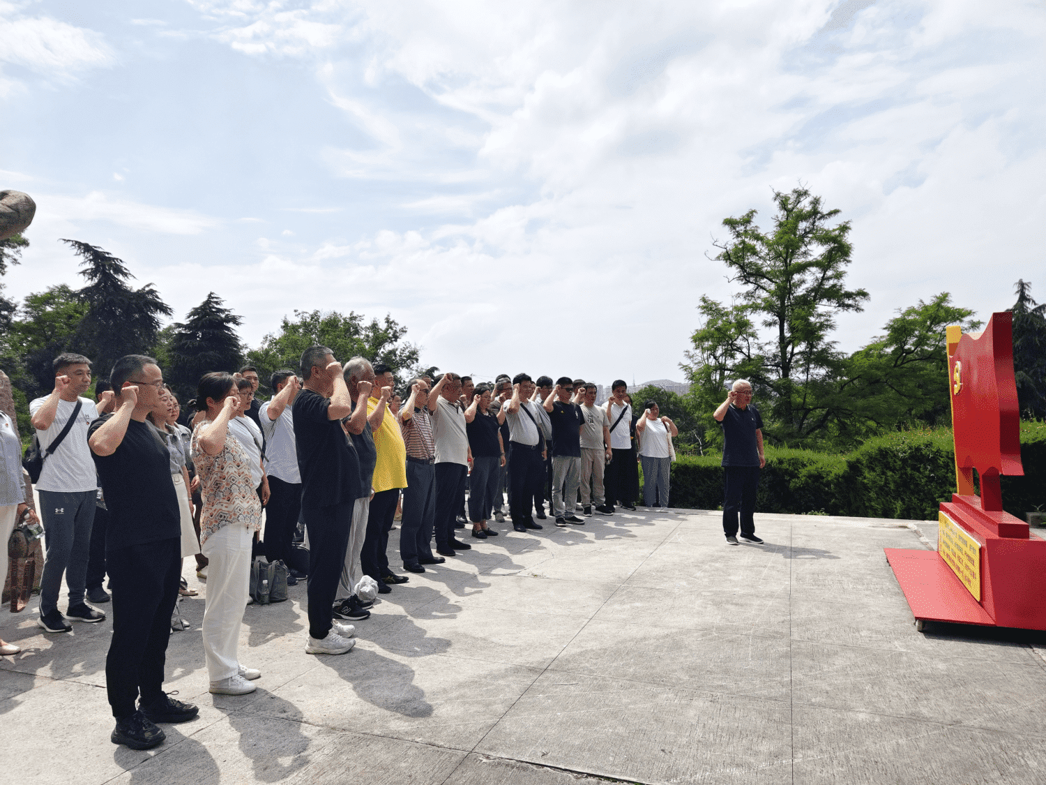 烈日炎炎,黨員同志們懷著無比崇敬的心情,來到航空烈士公墓的最高處——紀念碑廣場,舉行了莊重的憑吊儀式,向那些為國家、為民族英勇獻身的烈士們致以崇高的敬意。大家虔誠駐足于碑前,表達著哀思與敬意,追憶著英烈們用生命詮釋“航空救國”的偉大精神。全體黨員同志重溫入黨誓詞,堅定入黨初心,以初心敬黨心。